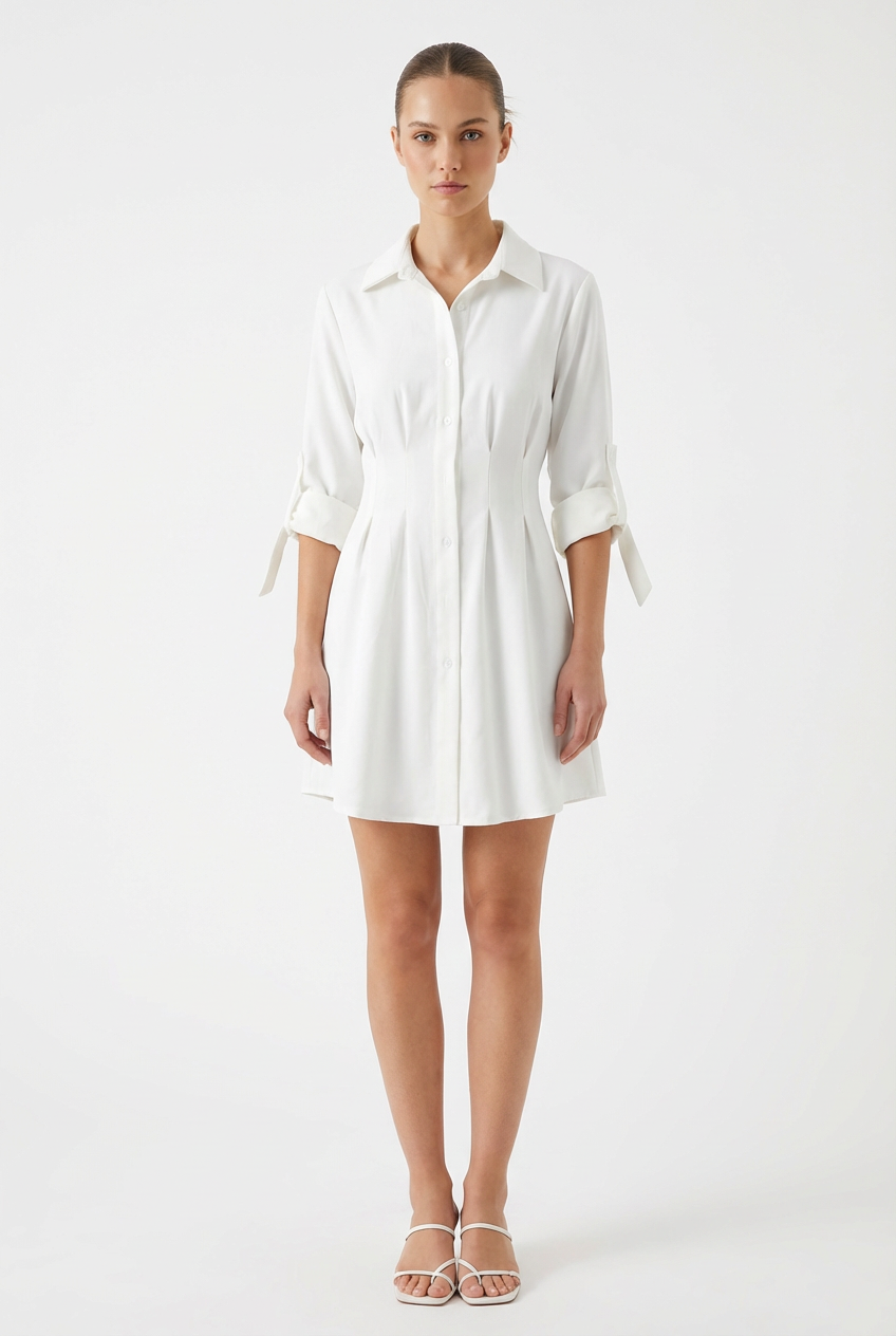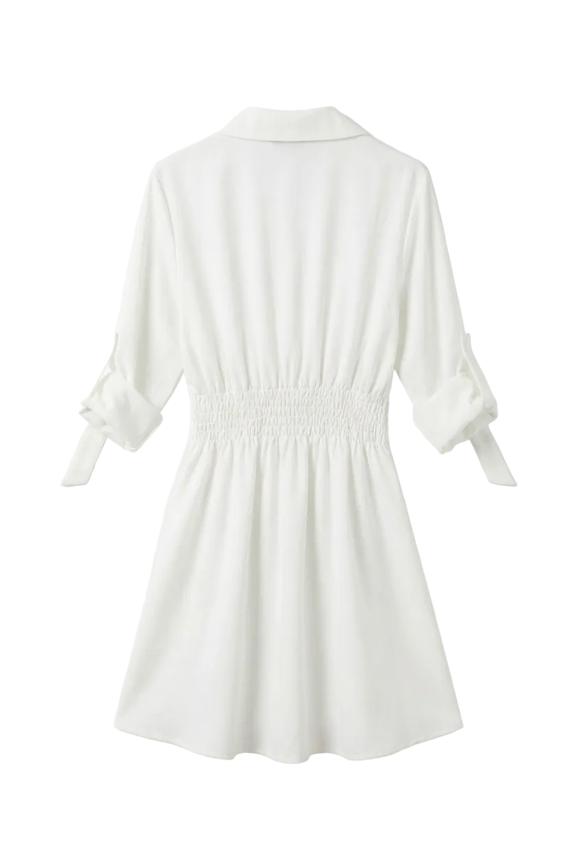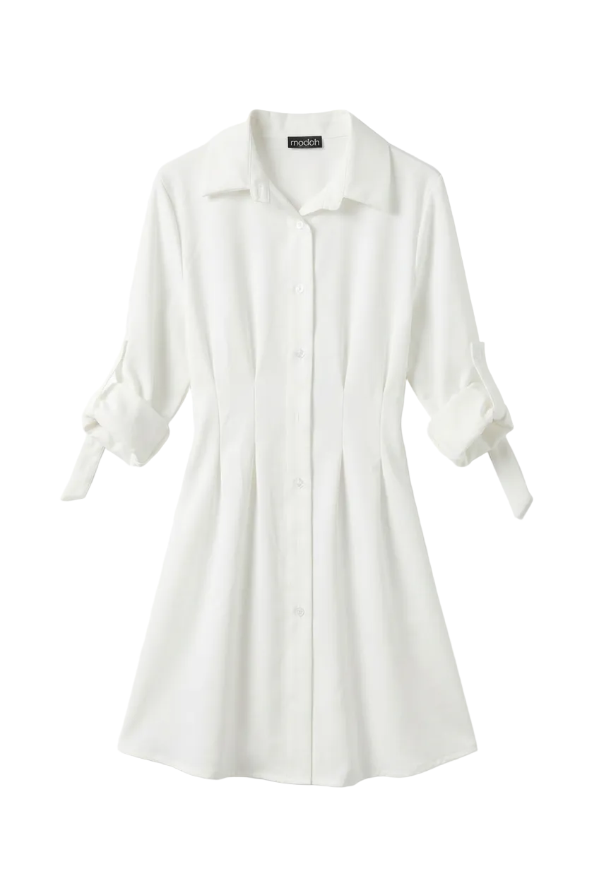 Stile e Colore: Un abito a camicia bianco candido, perfetto per un look estivo fresco, etereo e molto versatile.