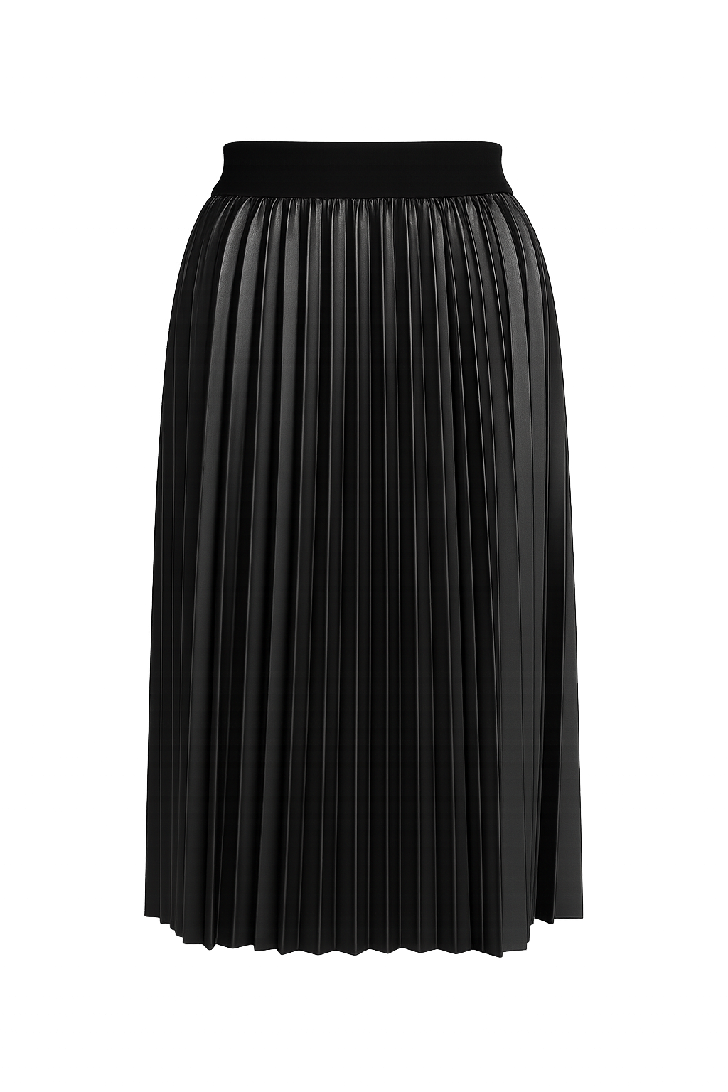 DESCRIZIONE: Gonna midi in eco-pelle plissé. Linea svasata che cade a metà polpaccio, vita elasticata per comfort e vestibilità facile. Il finish semi-opaco aggiunge carattere senza risultare rigido.