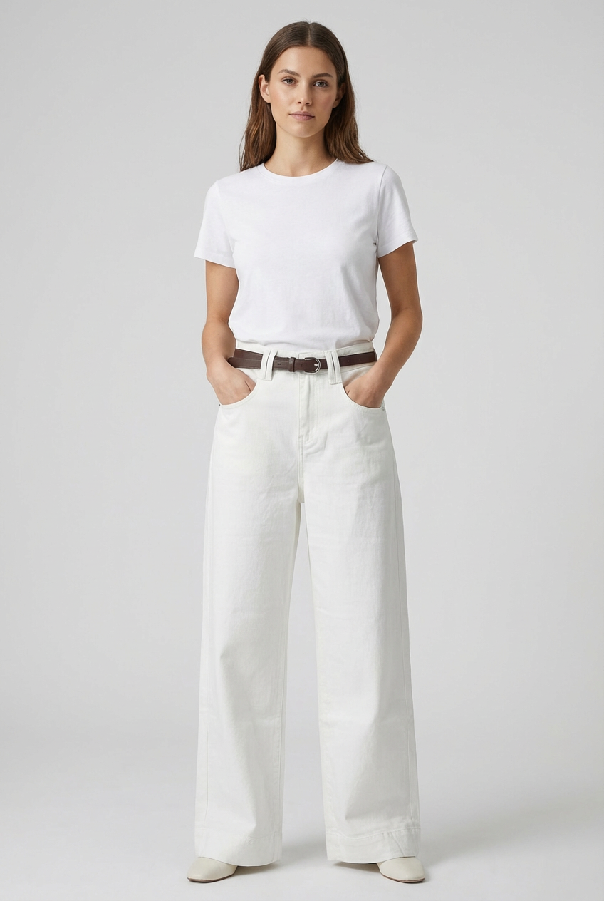 • Fit: Gamba larga (wide-leg) con caduta fluida.